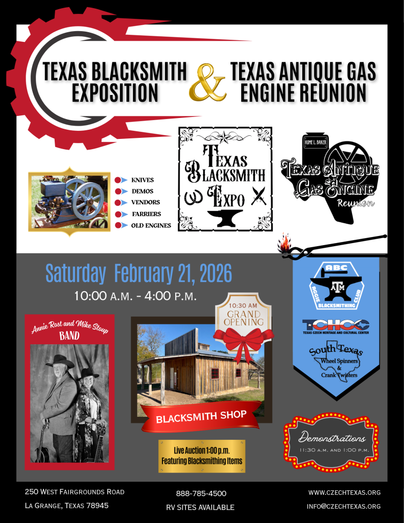 Shows start at 10A. Blacksmithing Featured Demos at 11:30A & 1P. Demonstrations, Blacksmith Sessions, Vendors, Music, Live Auction, and more!
