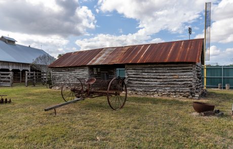 The Log Corn Crib stands as a remarkable example of traditional Czech craftsmanship adapted to Texas farm life. Built around 1904, this double log corn crib features a dogtrot design with hand-hewn logs joined by saddle notching, showcasing the settlers’ skilled woodworking techniques.