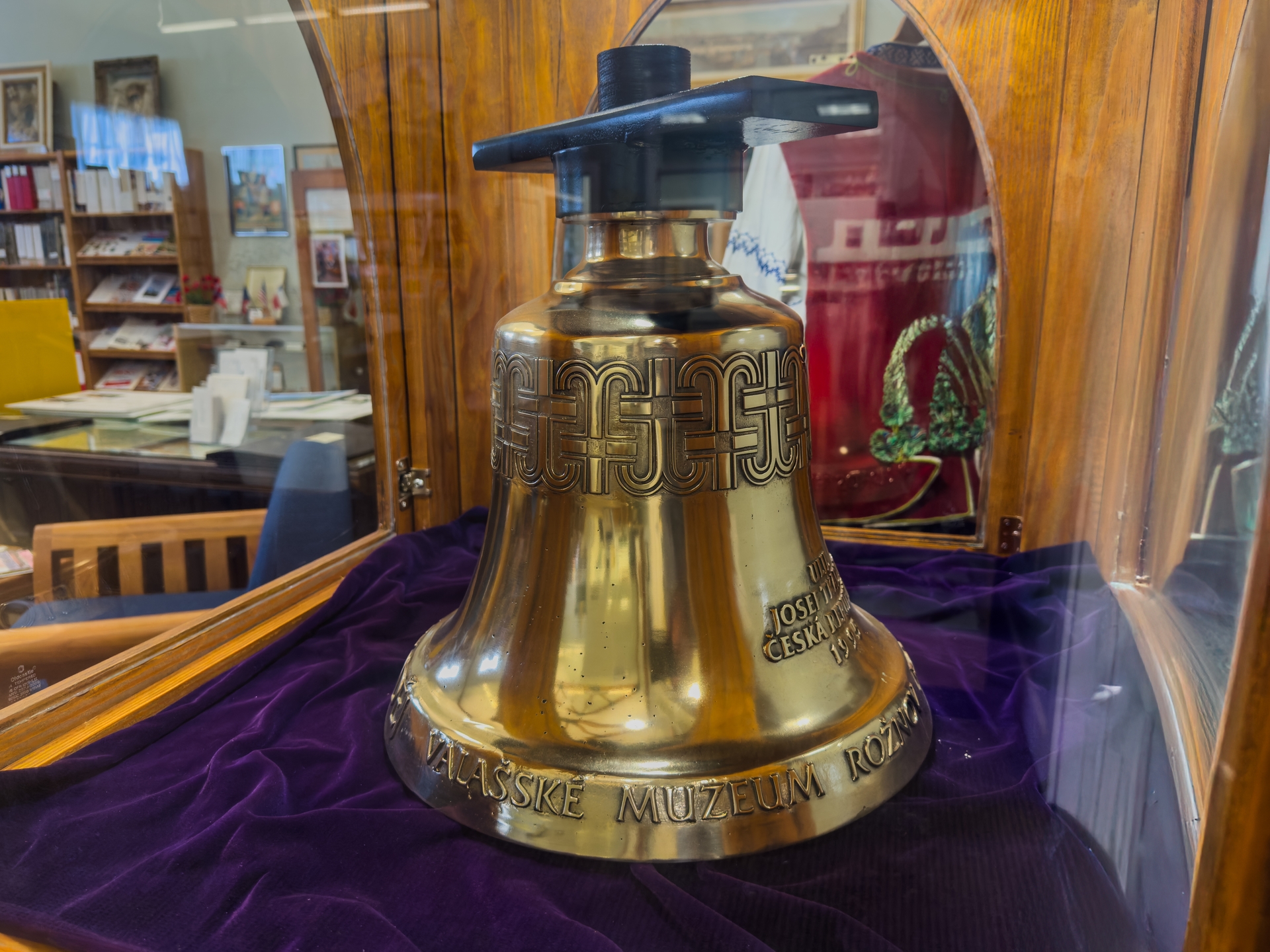 The bell and belfry bear the Czech inscription, “Co srdce spoji, more nerozdvoji” (“What the heart joins, the sea cannot divide”), reflecting a message of love and unity between the Czech lands and the Czech community in Texas. The belfry was dedicated on November 10, 1996, in memory of Victor Alfons Peter, a Czech Heritage Society trustee instrumental in fostering friendship between Texas and the Czech Republic.